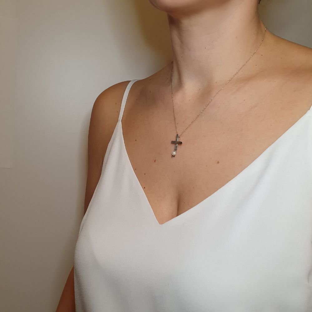 Σταυρός λευκόχρυσος με Μαργαριτάρι