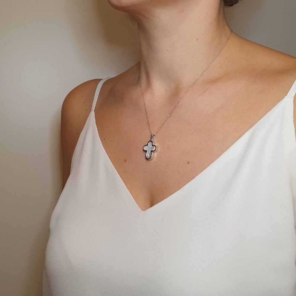 Σταυρός λευκόχρυσος με Ζιργκον & Φίλντισι
