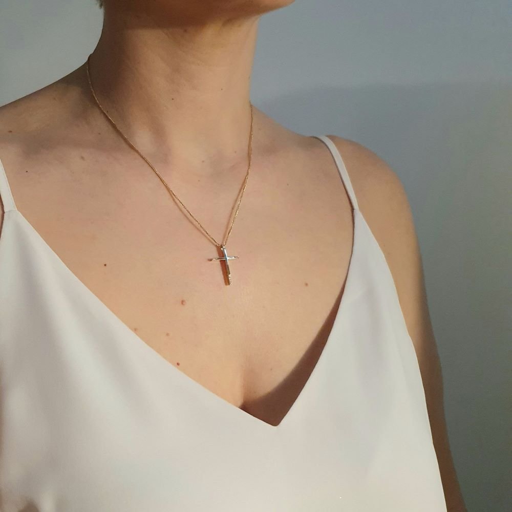 Σταυρός λεπτός γυαλιστερός με Ζιργκον