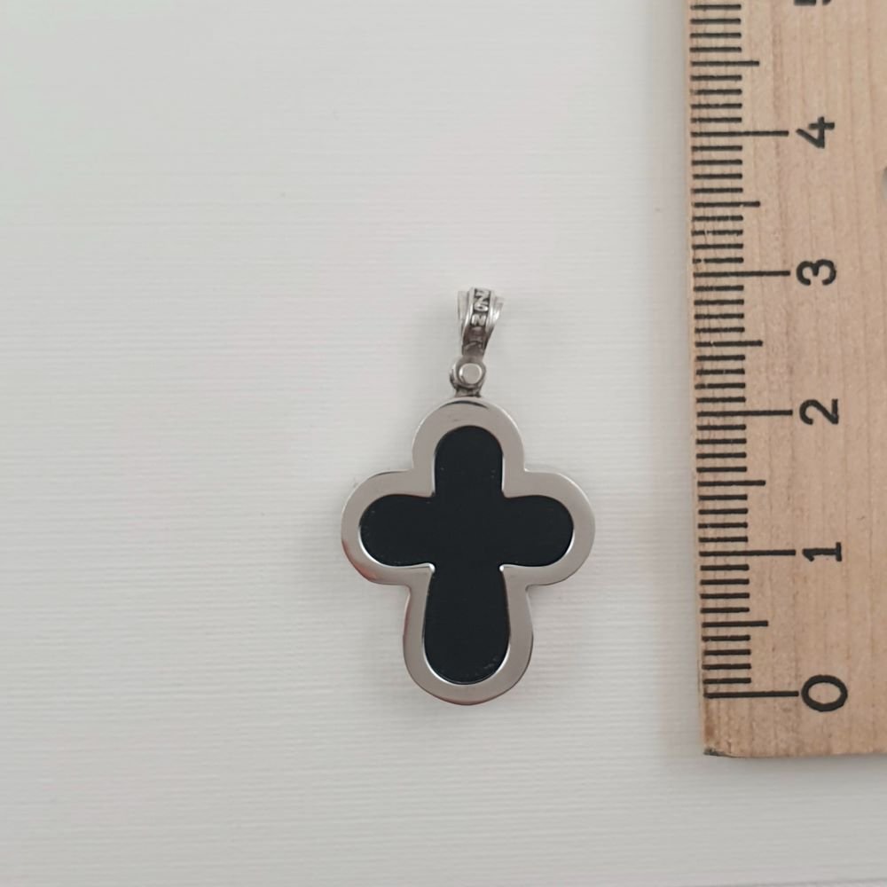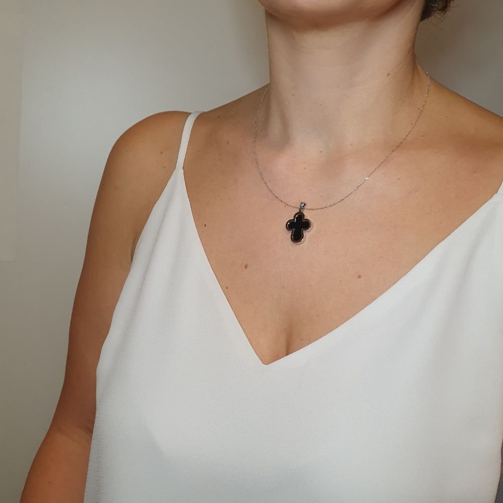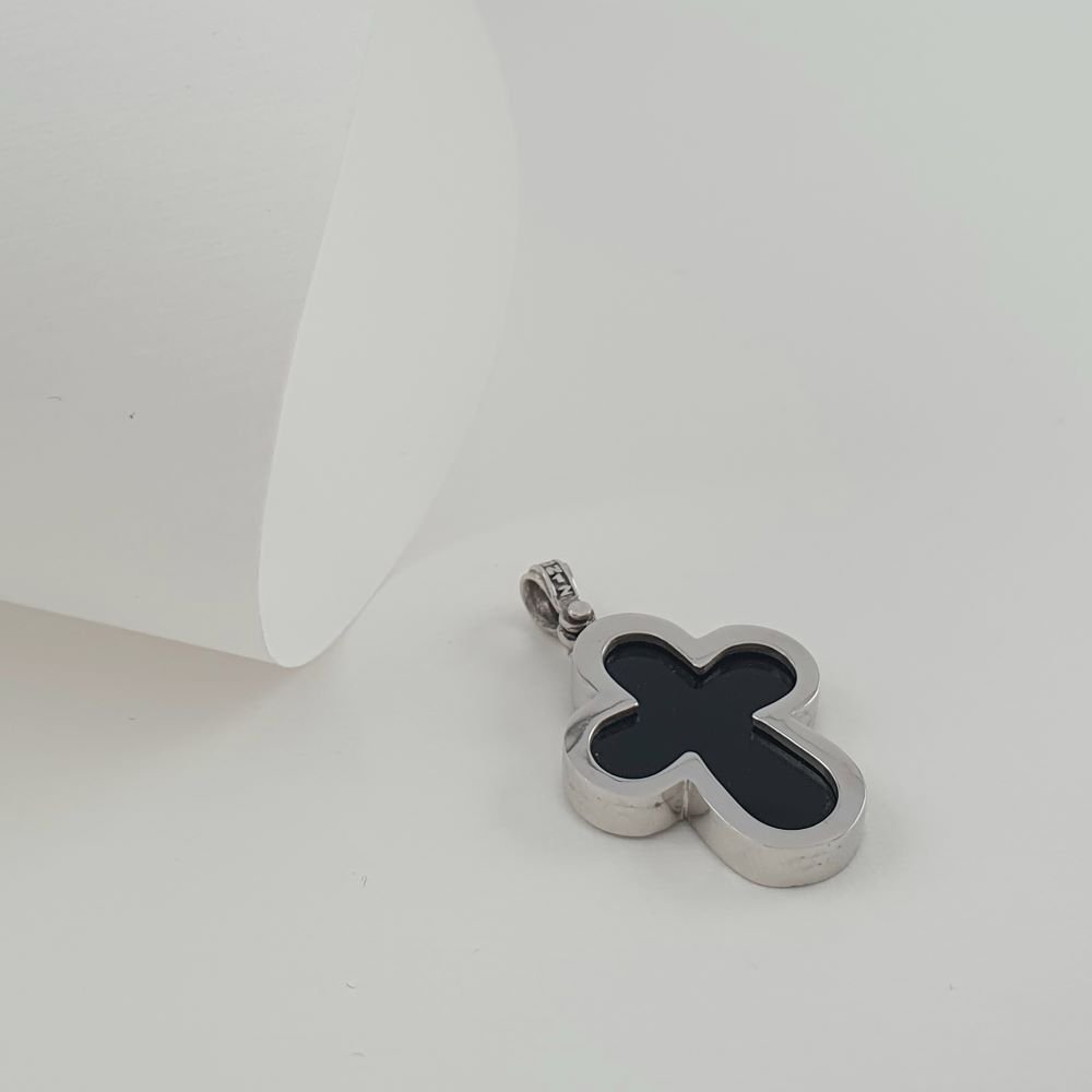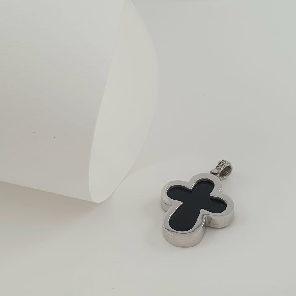 Σταυρός λουλούδι από λευκόχρυσο & μαύρο Όνυχα