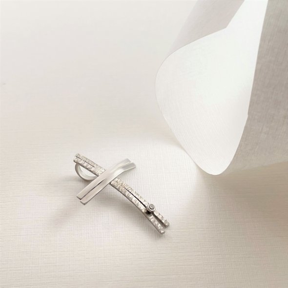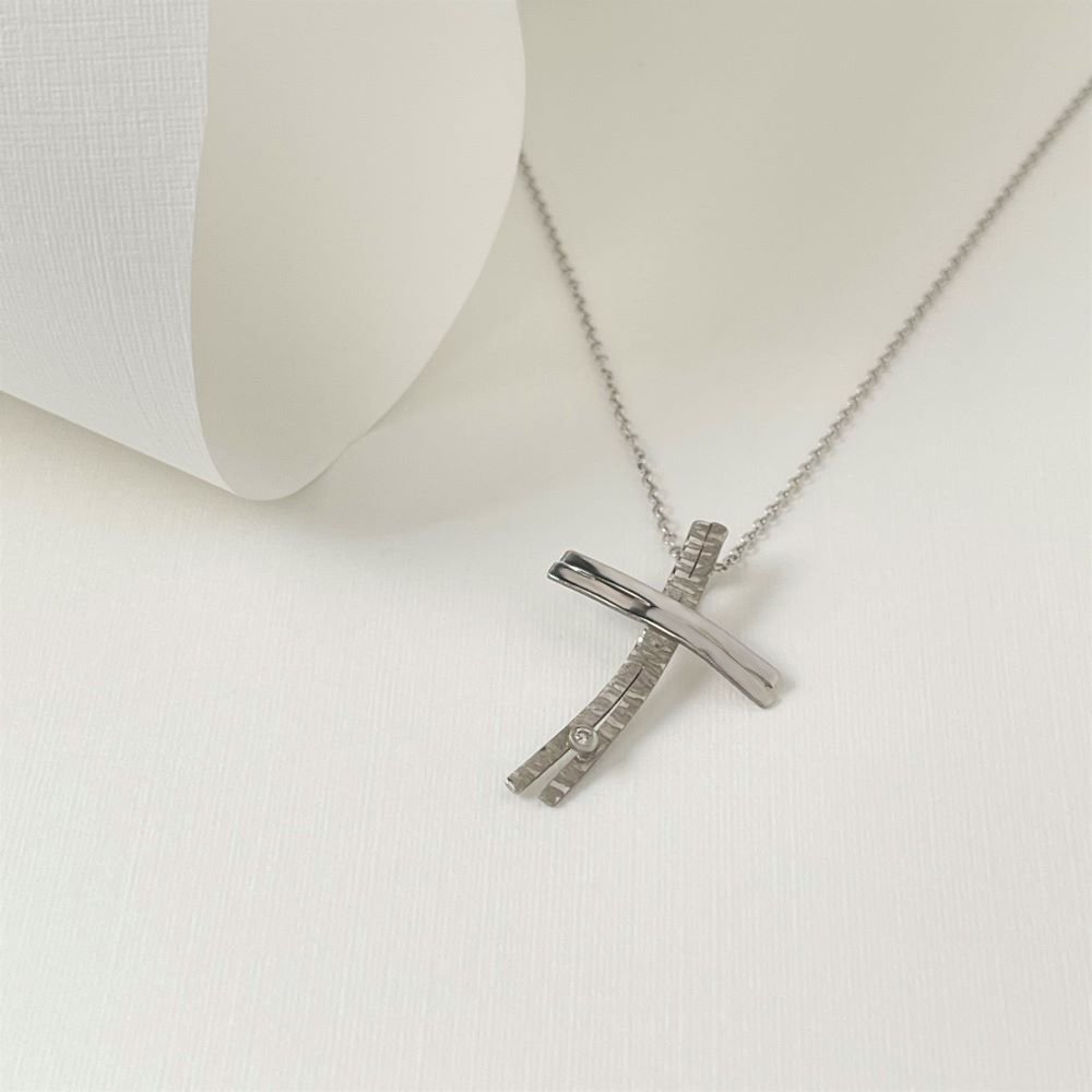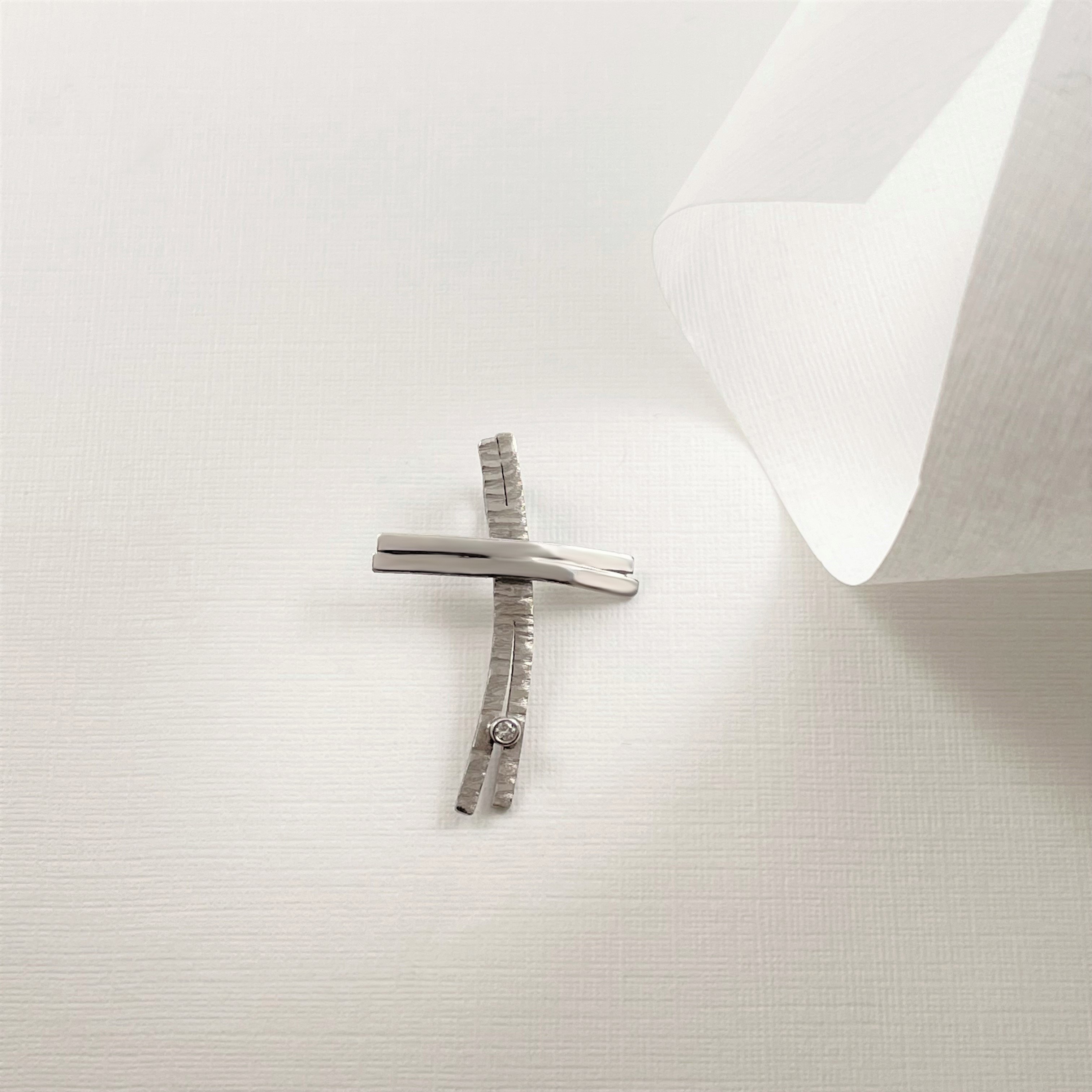 Σταυρός με υφή ξύλου χειροποίητος με διαμάντι