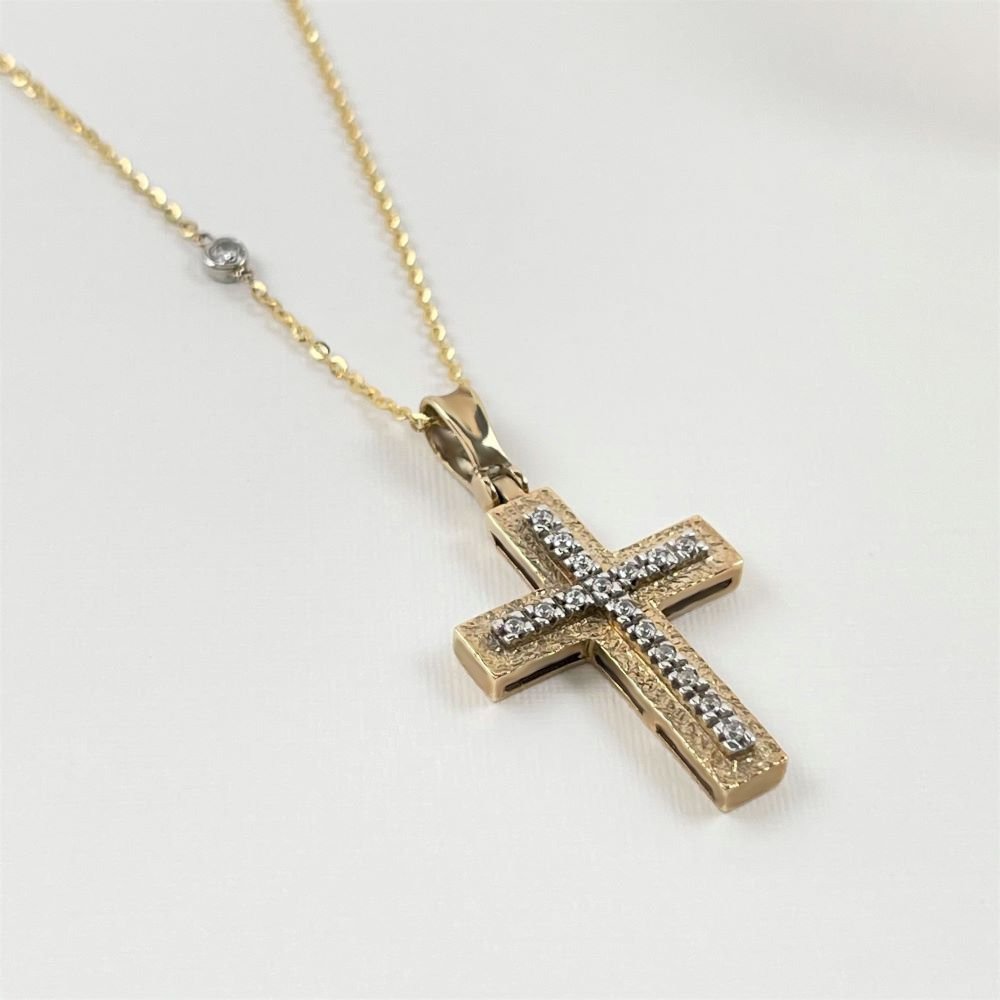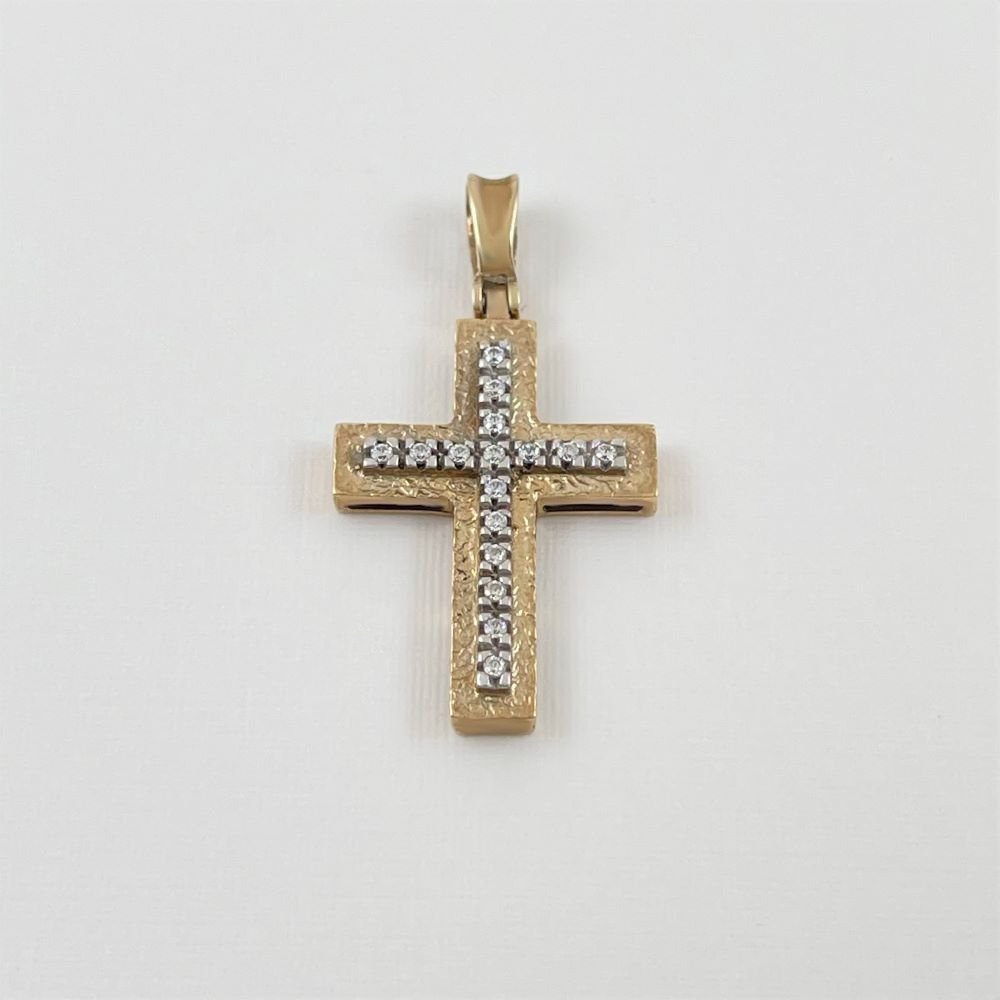 Σταυρός σφυρήλατος χρυσός με λαμπερά ζιργκόν