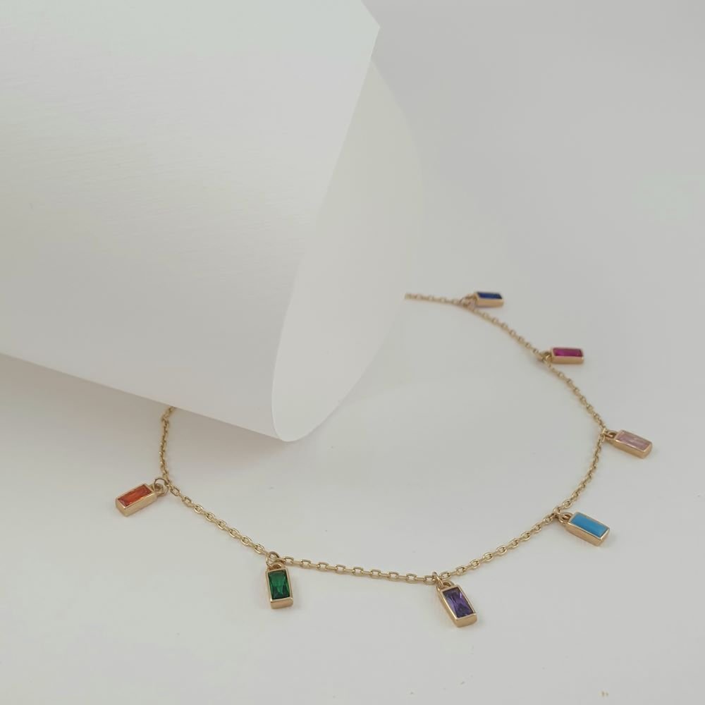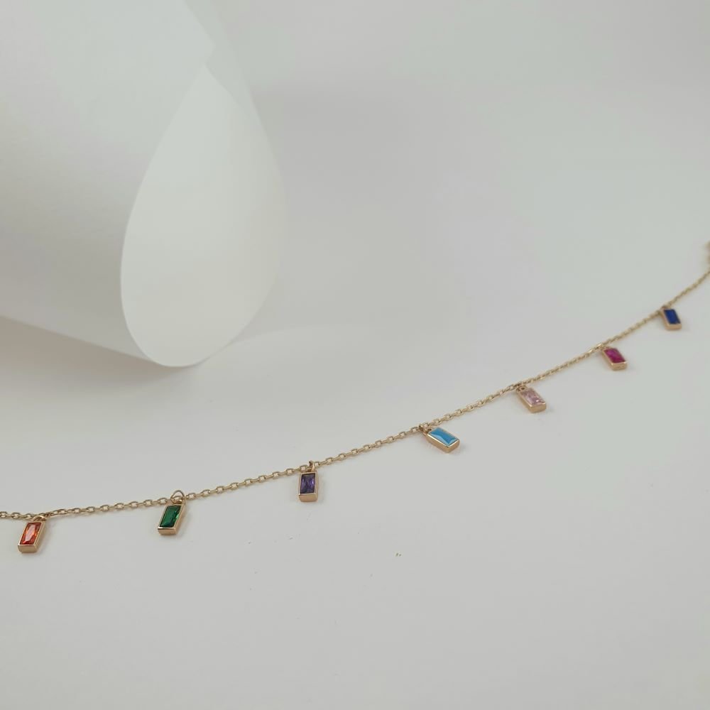 Βραχιόλι αλυσίδα χρυσή με κρεμαστά πολύχρωμα Ζιργκον
