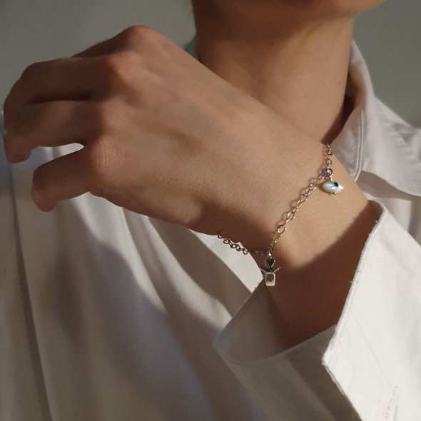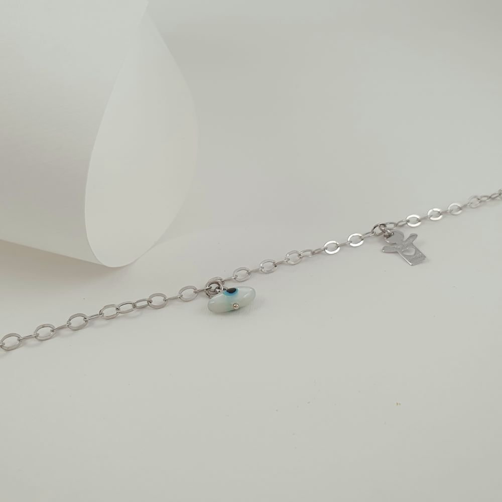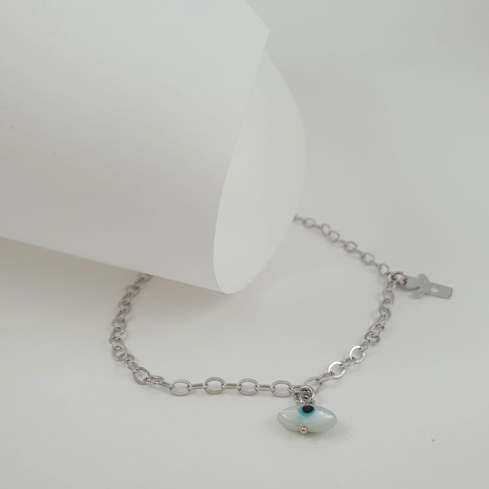 Βραχιόλι αλυσίδα λευκόχρυση με ματάκι από Φίλντισι & παιδάκι
