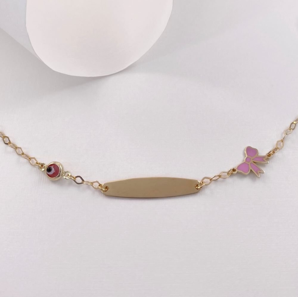 Βραχιόλι παιδική ταυτότητα με μάτι και φιόγκο