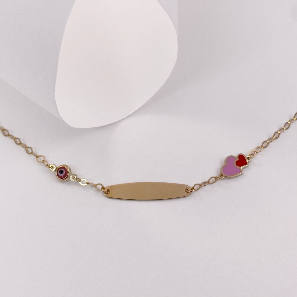 Βραχιόλι παιδική ταυτότητα με μάτι και καρδιές