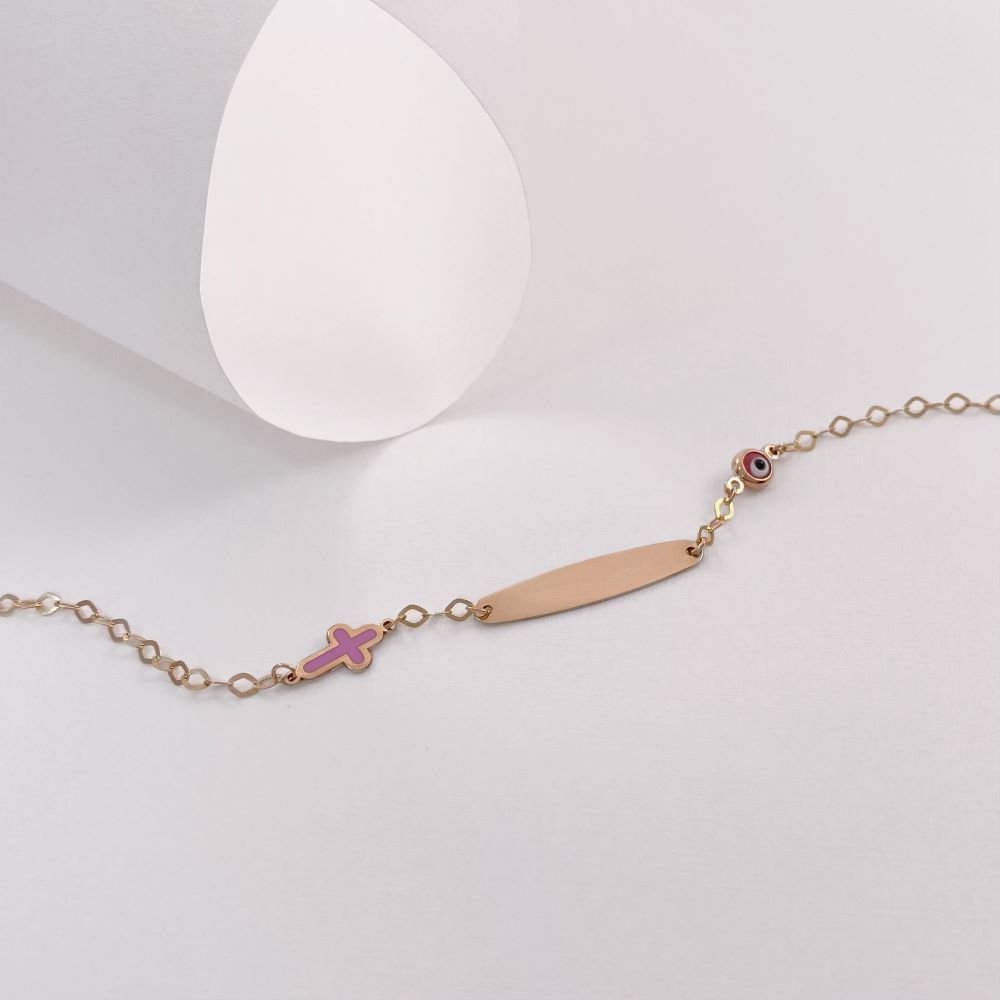 Βραχιόλι παιδική ταυτότητα με μάτι και σταυρό