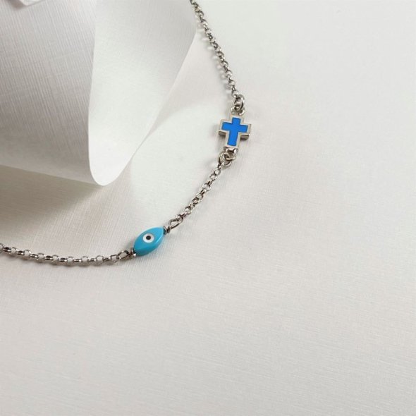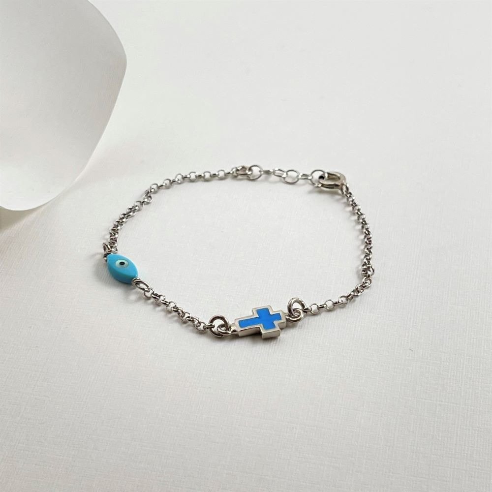 Βραχιόλι παιδικό με σταυρό και μάτι