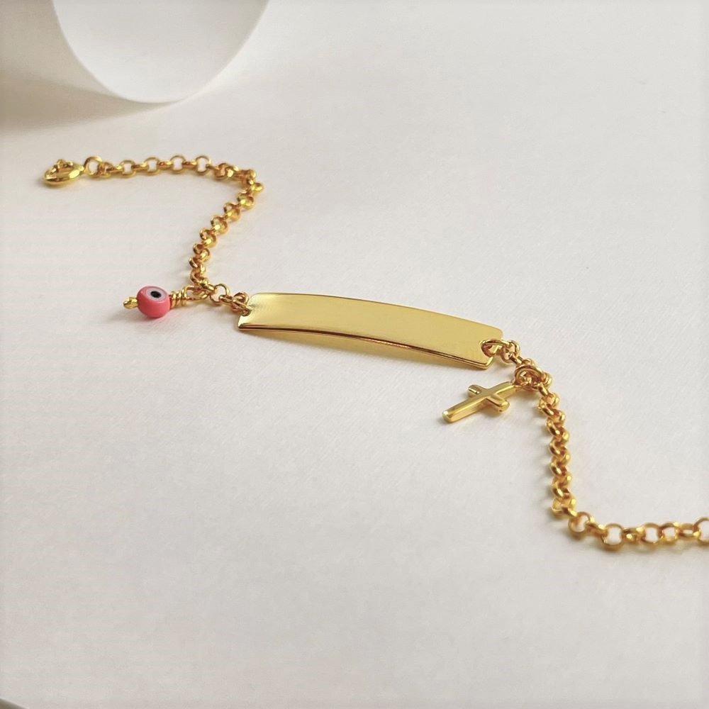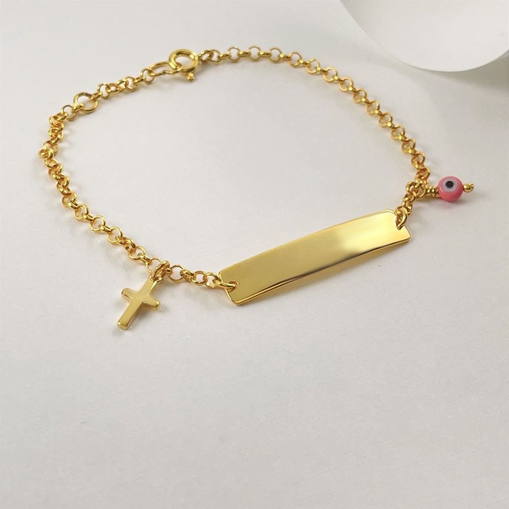 Βραχιόλι ταυτότητα με σταυρό και μικρό ροζ μάτι