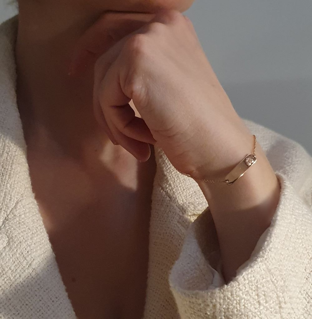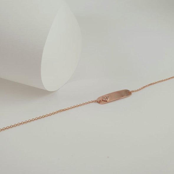 Βραχιόλι ταυτότητα ροζ χρυσή με καρδούλα από Διαμάντια