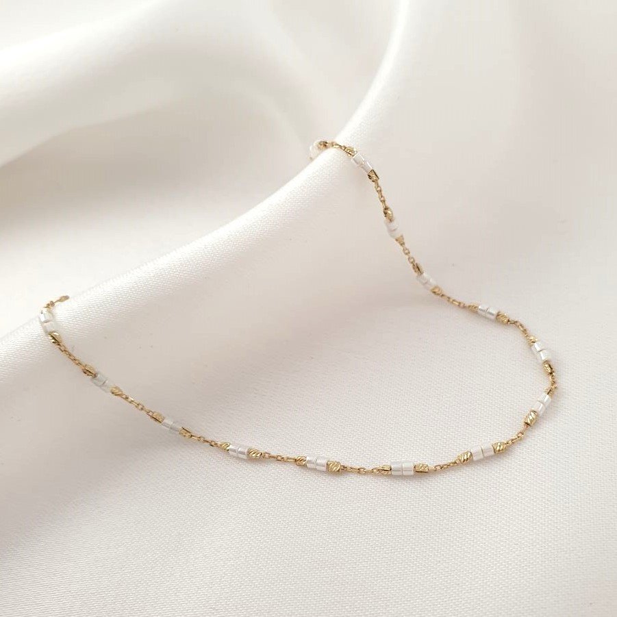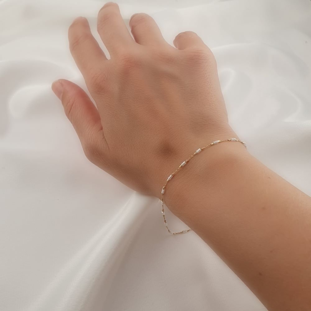 Βραχιόλι αλυσίδα χρυσή με χάντρες Μαργαριτάρι