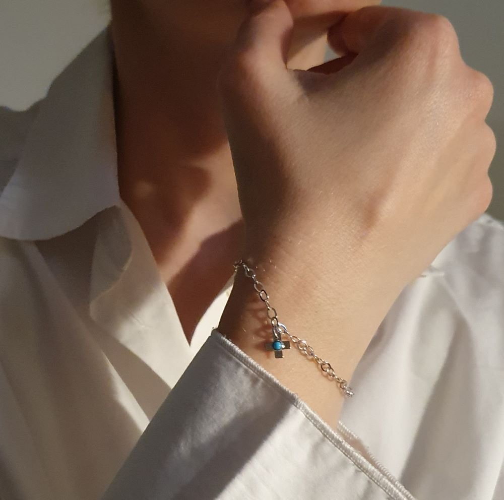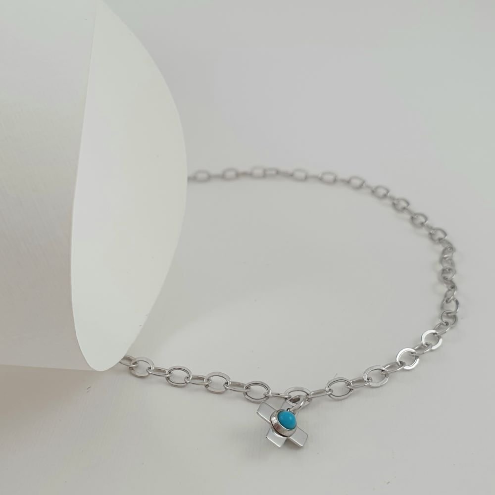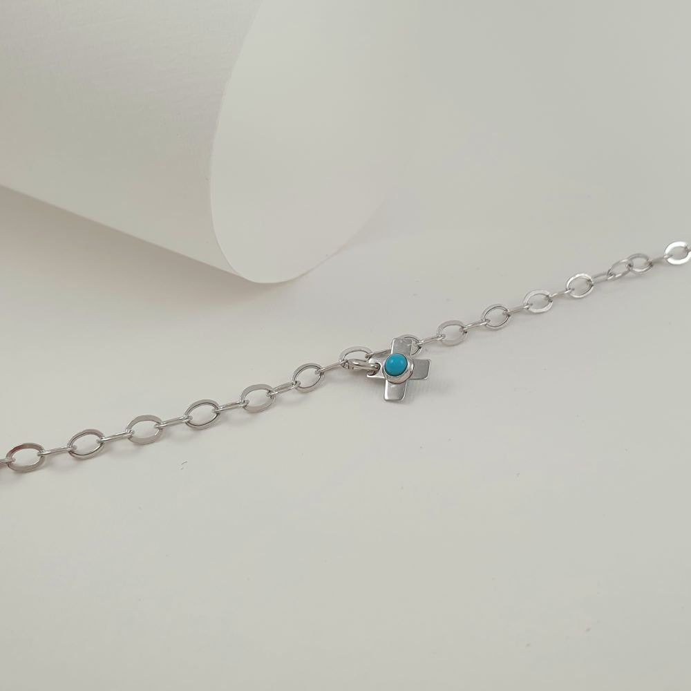Βραχιόλι αλυσίδα λευκόχρυση με κρεμαστό σταυρουδάκι με Τιρκουαζ