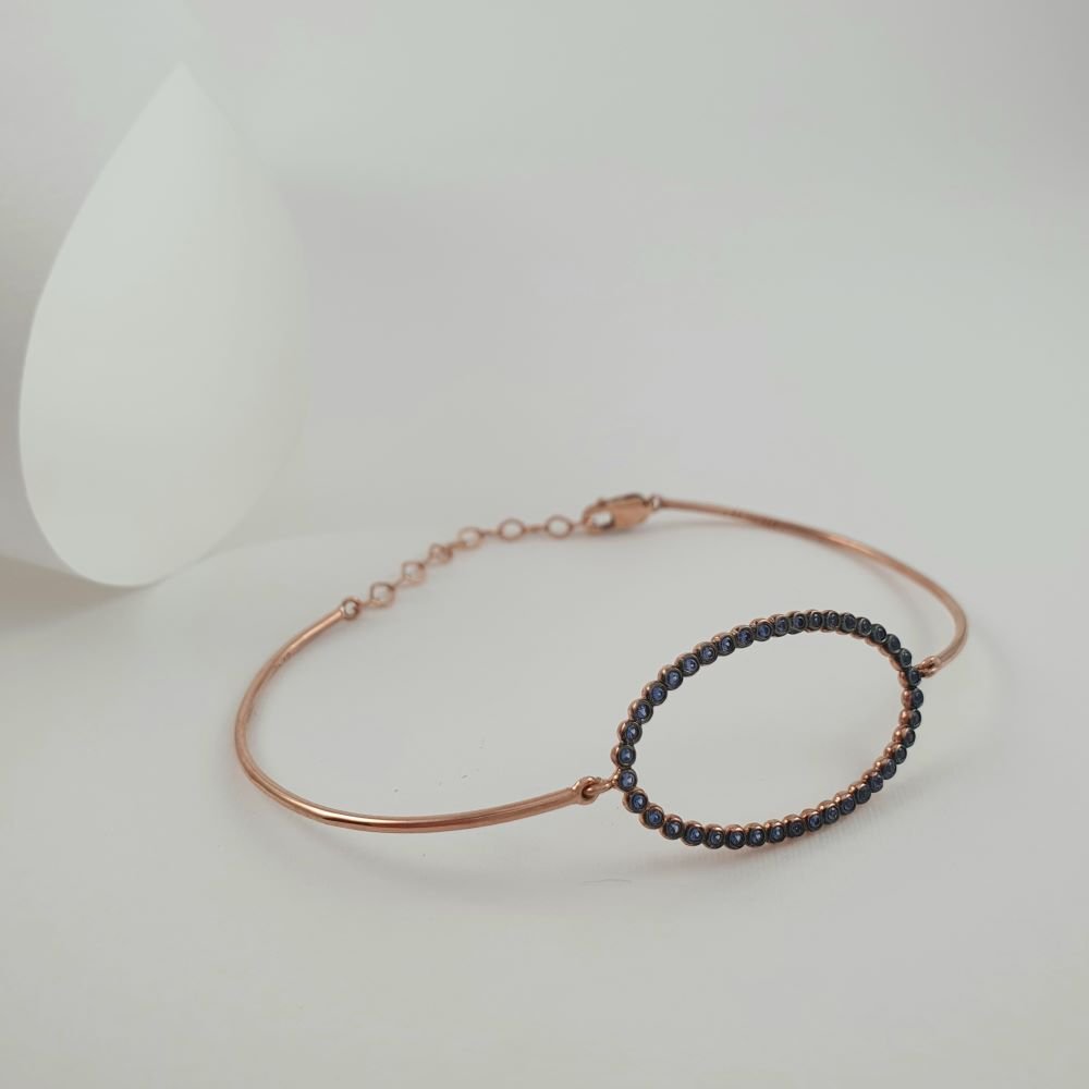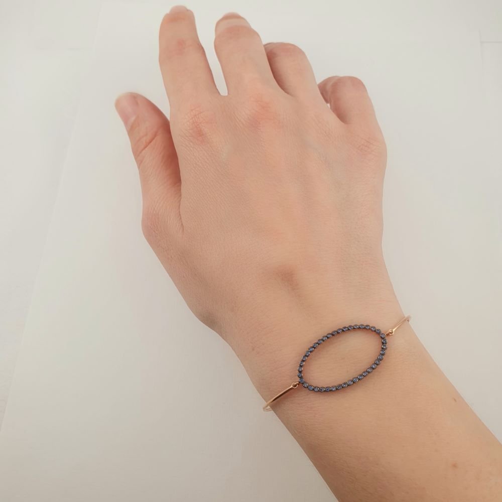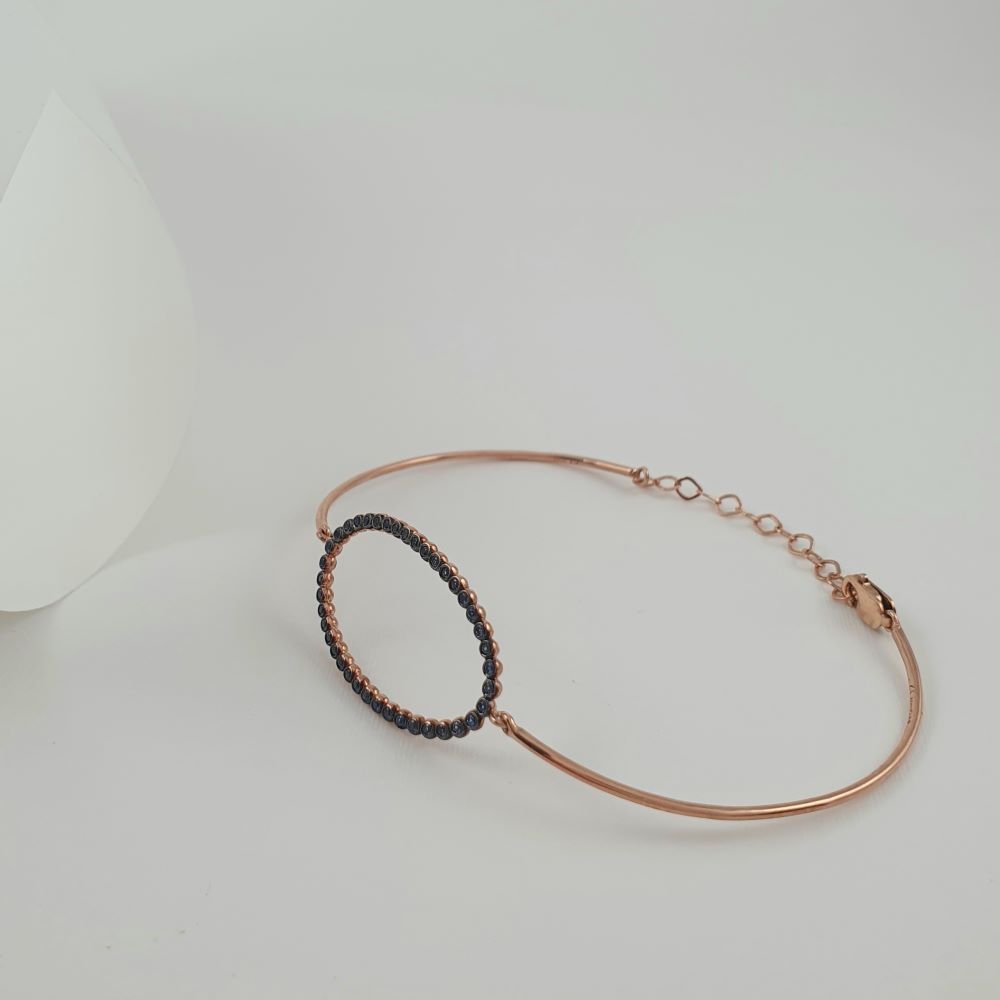 Βραχιόλι χειροπέδα ροζ χρυσή με μαύρα Ζιργκον