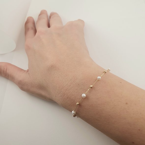 Βραχιόλι χρυσό με λαμπερές μπάλες και Μαργαριτάρια
