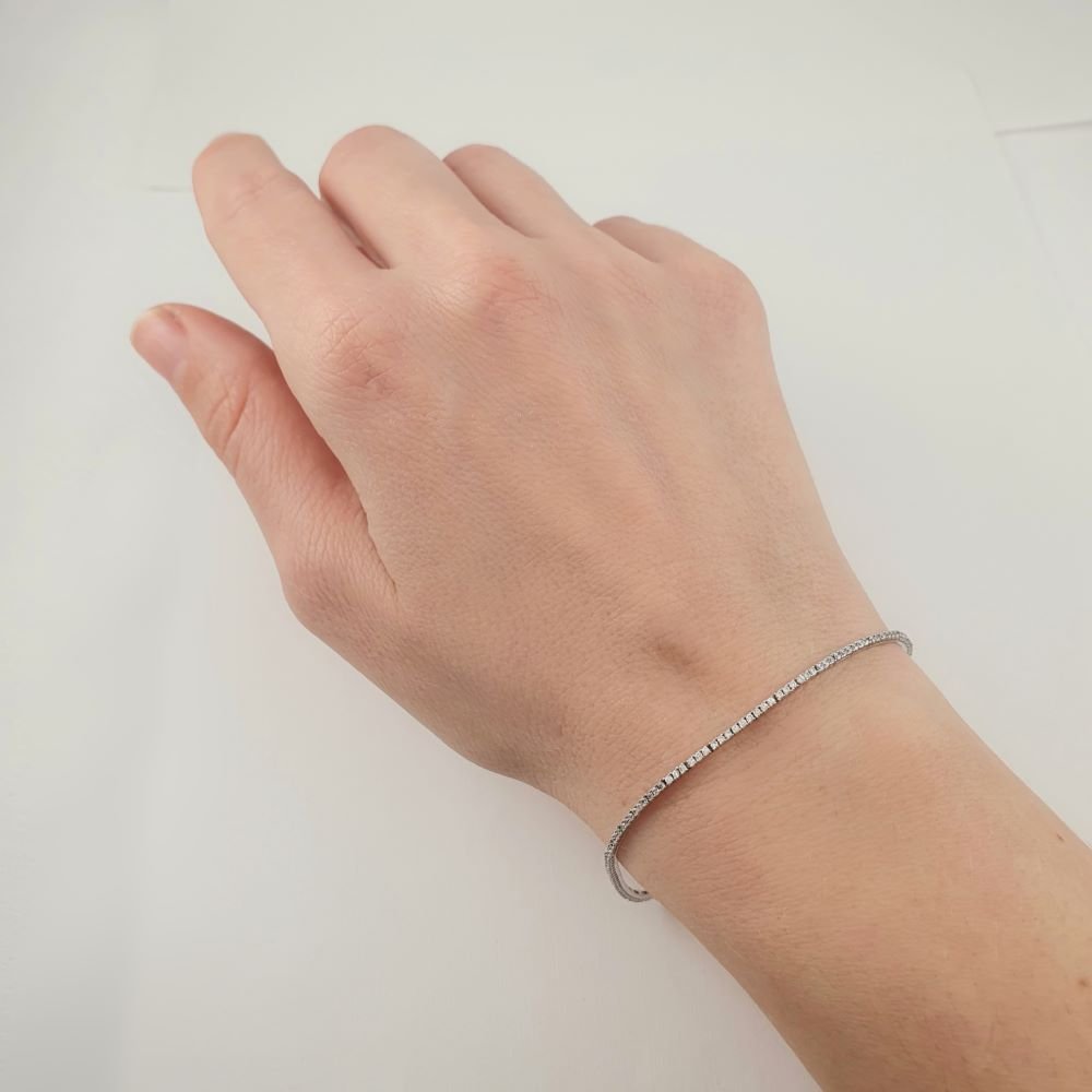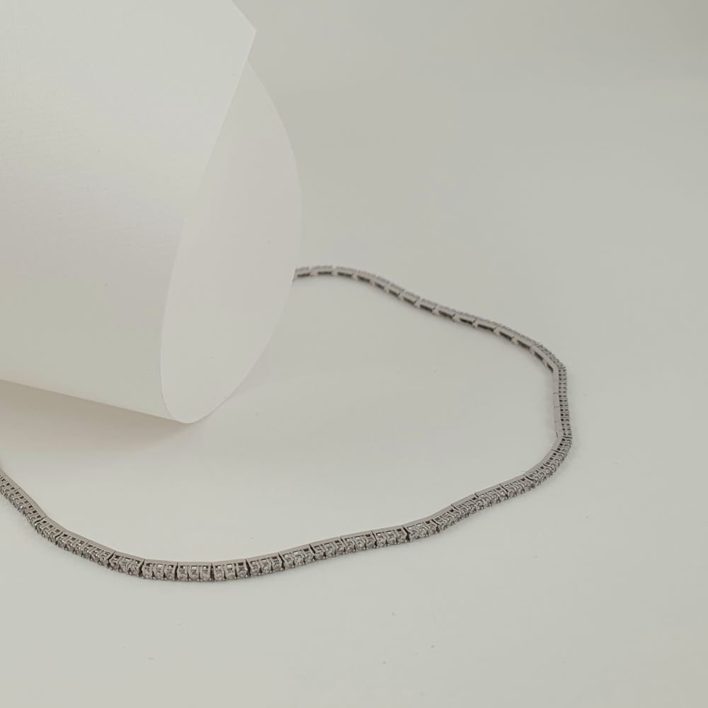 Βραχιόλι λευκόχρυσο ριβιέρα με λευκά Ζιργκον