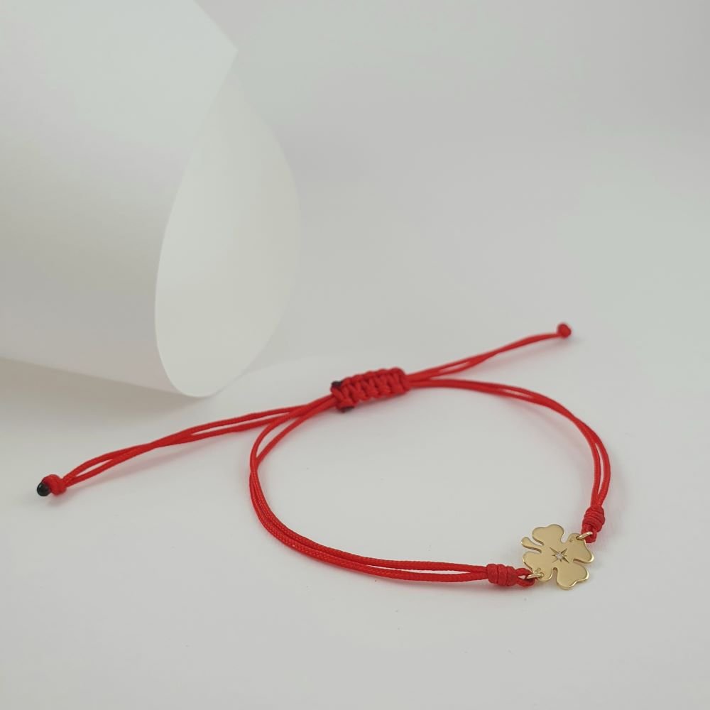 Βραχιόλι μακραμέ με τετράφυλλο τριφύλλι χρυσό με διαμάντι