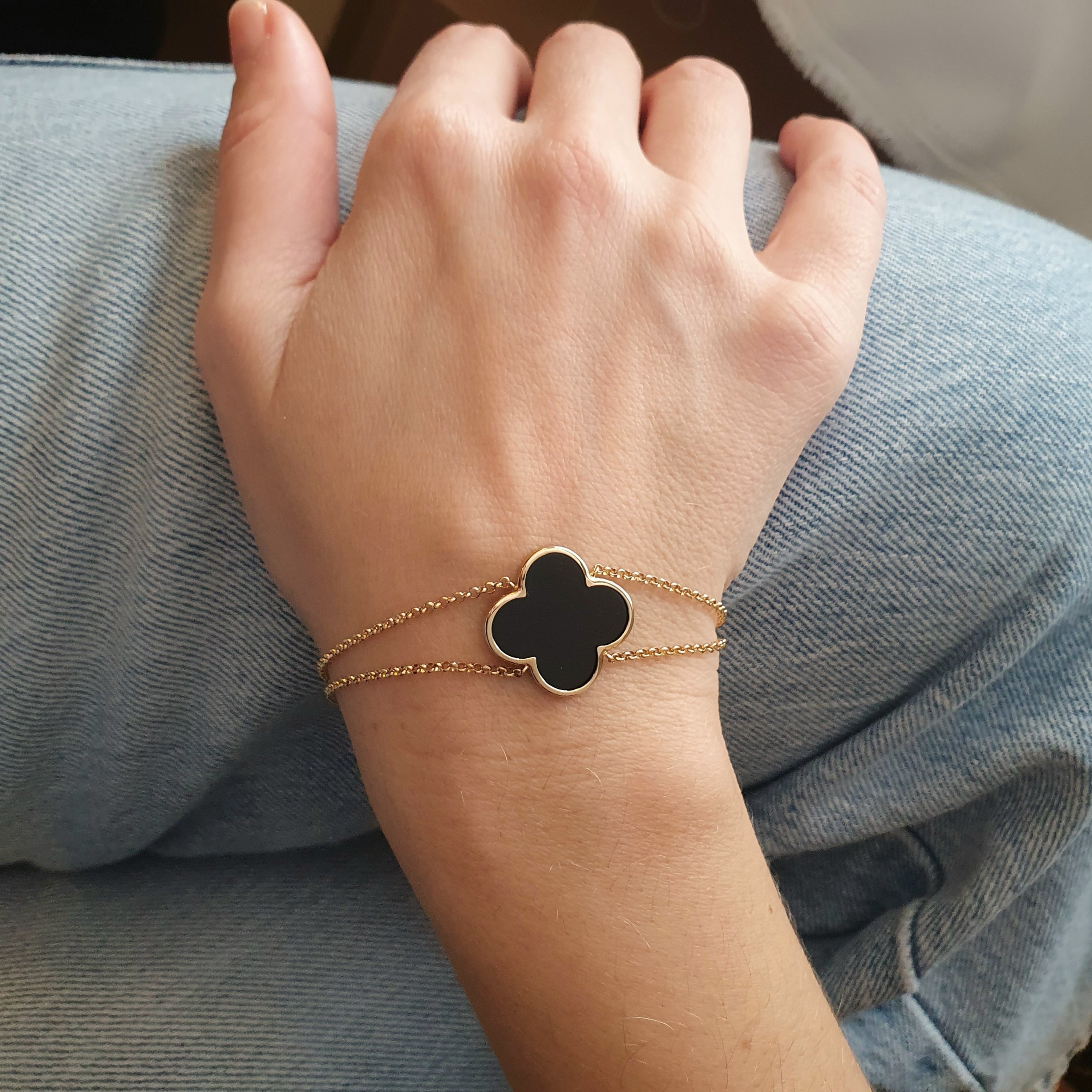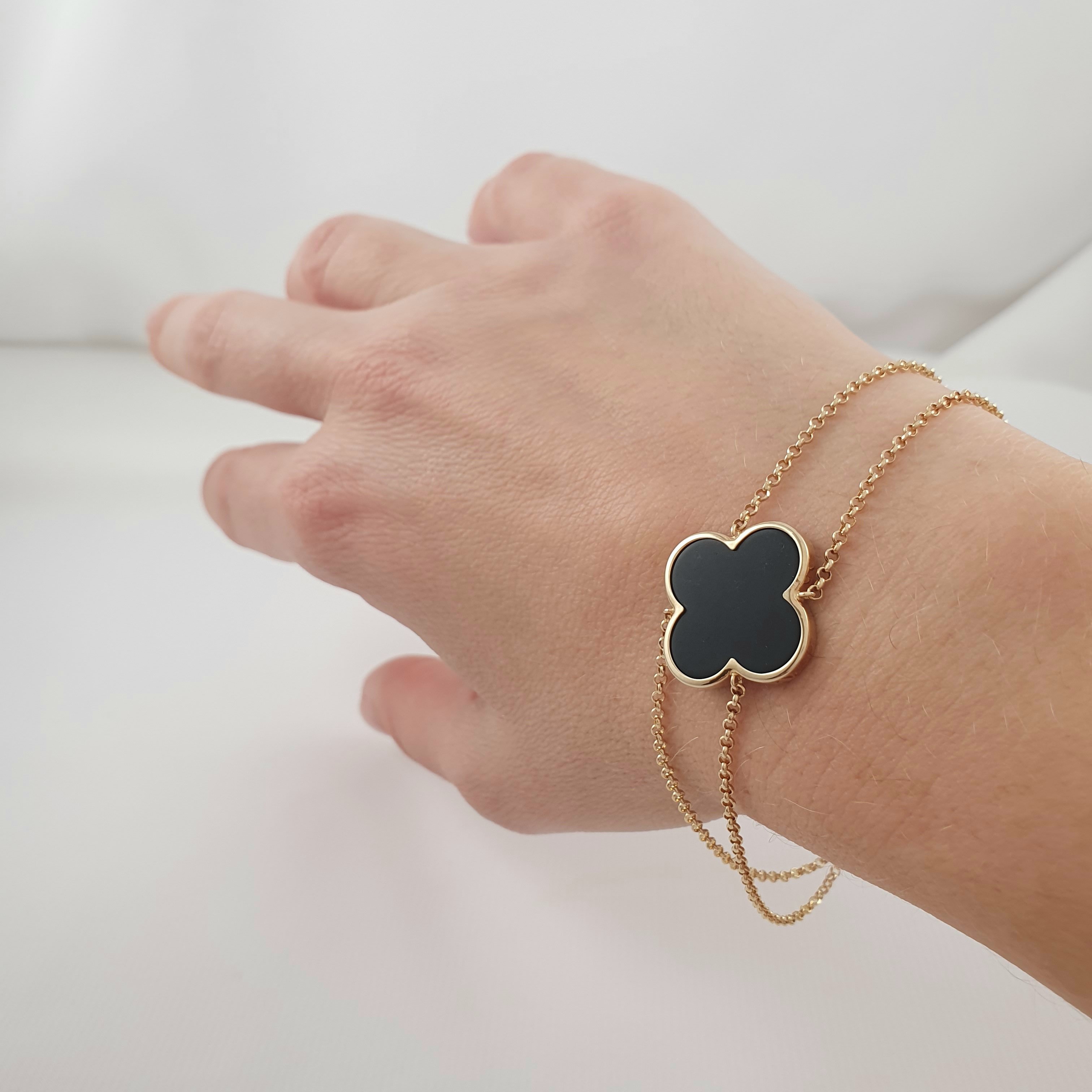 Βραχιόλι με μαύρο λουλούδι σε λίθο μαύρο Όνυχα