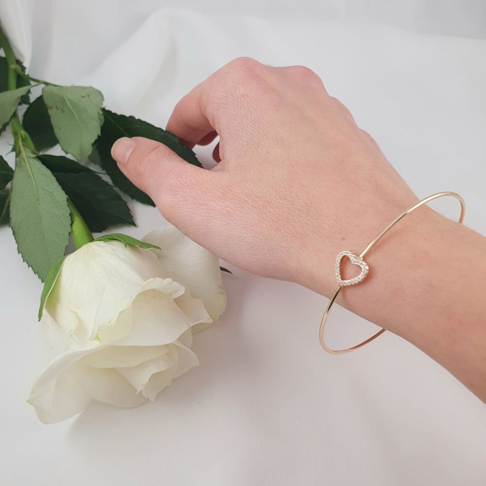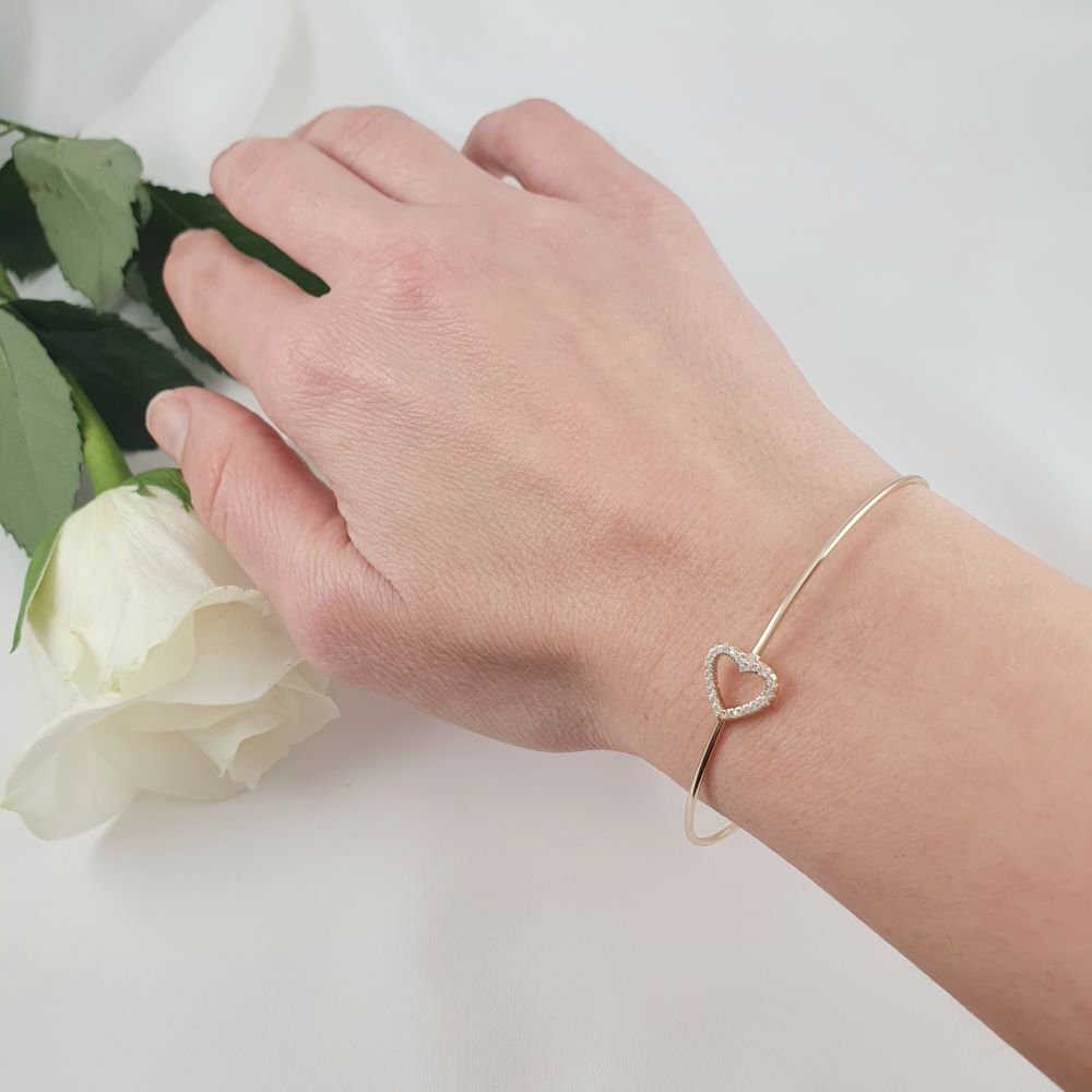 Βραχιόλι βέργα ανοιχτή με καρδιά & Ζιργκον