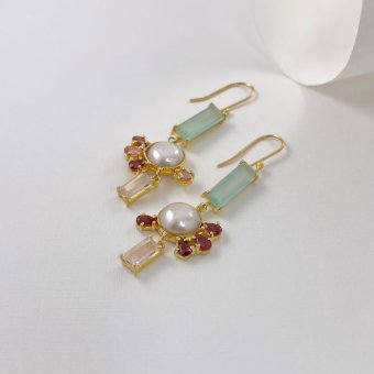 Σκουλαρίκια με κόκκινη ροζέτα δάκρυ
