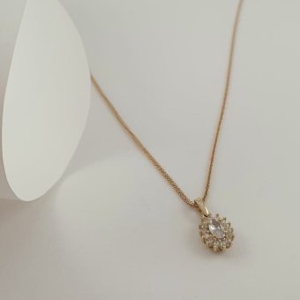 Κολιέ αλυσίδα χρυσή με δάκρυα από λευκά Ζιργκον