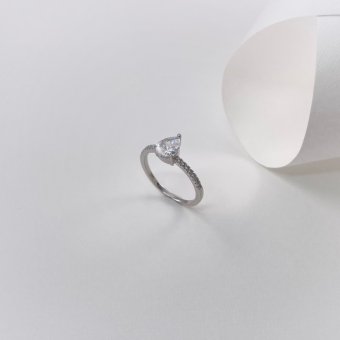 Δαχτυλίδι μονόπετρο από λευκόχρυσο με Ζιργκον σε σχήμα καρδιάς